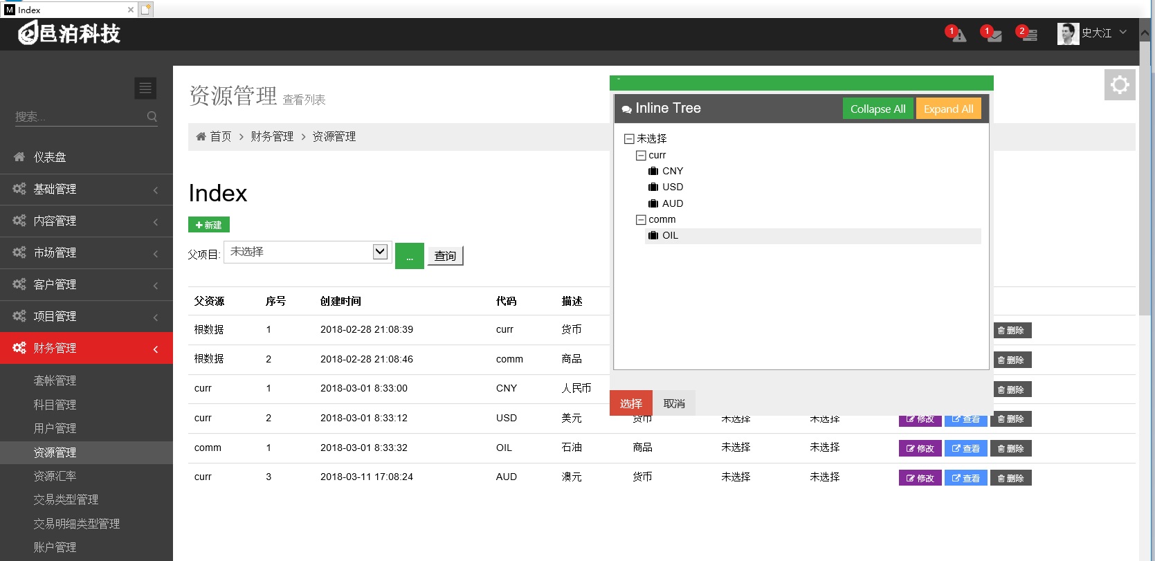 (8).產品管理:領域管理,產品管理,功能管理,需求管理,草案管理,結點關系管理,資產負債管理,資源單位管理,匯率管理;