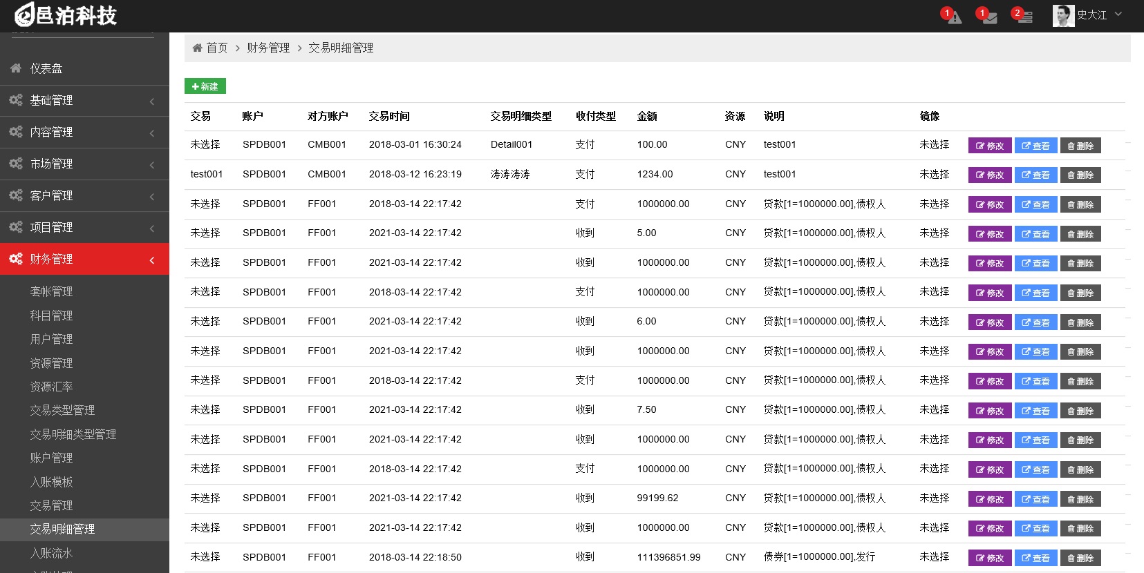 (5).財務會計管理:套賬管理,科目維護,交易方管理,賬戶管理,歷史賬戶演算,交易類型,交易明細類型,入賬模板維護,交易管理,交易明細管理,總賬管理,入賬批處理,交易明細默認值,交易默認值,資產負債表,現金流表,損益表;