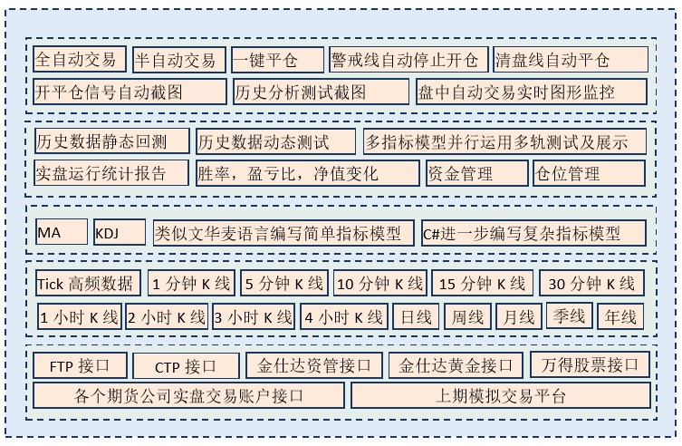 前臺業務包括:交易報單,預報單,估值試算,行情,交易分析,靜態數據,模擬交易。