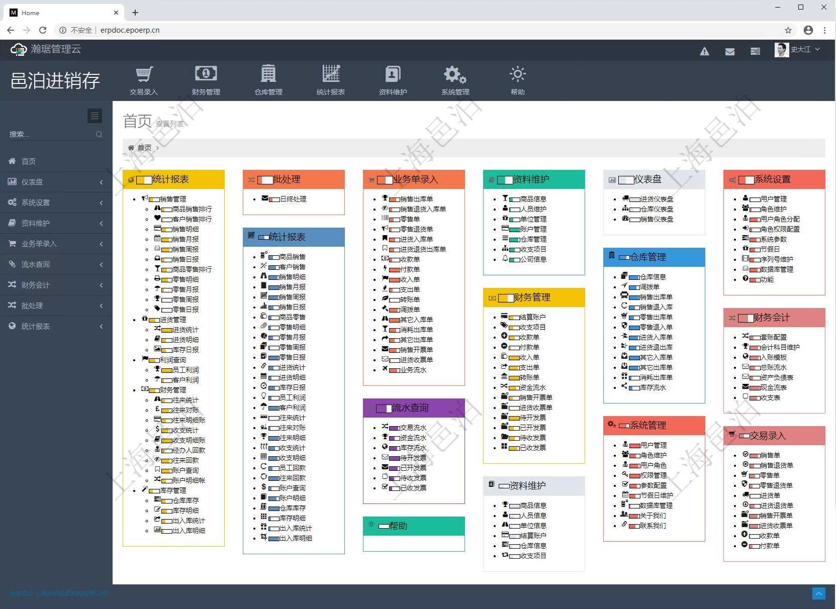 倉儲物流管理包括功能模塊有: 庫存維護, 倉庫維護, 庫柜容器維護, 物料類型, 物料維護, 物品管理, 物品變更, 庫存變化流水, 物品移庫管理, 承運人維護, 運輸管理, 運輸明細, 圖碼管理, 掃碼日志維護。