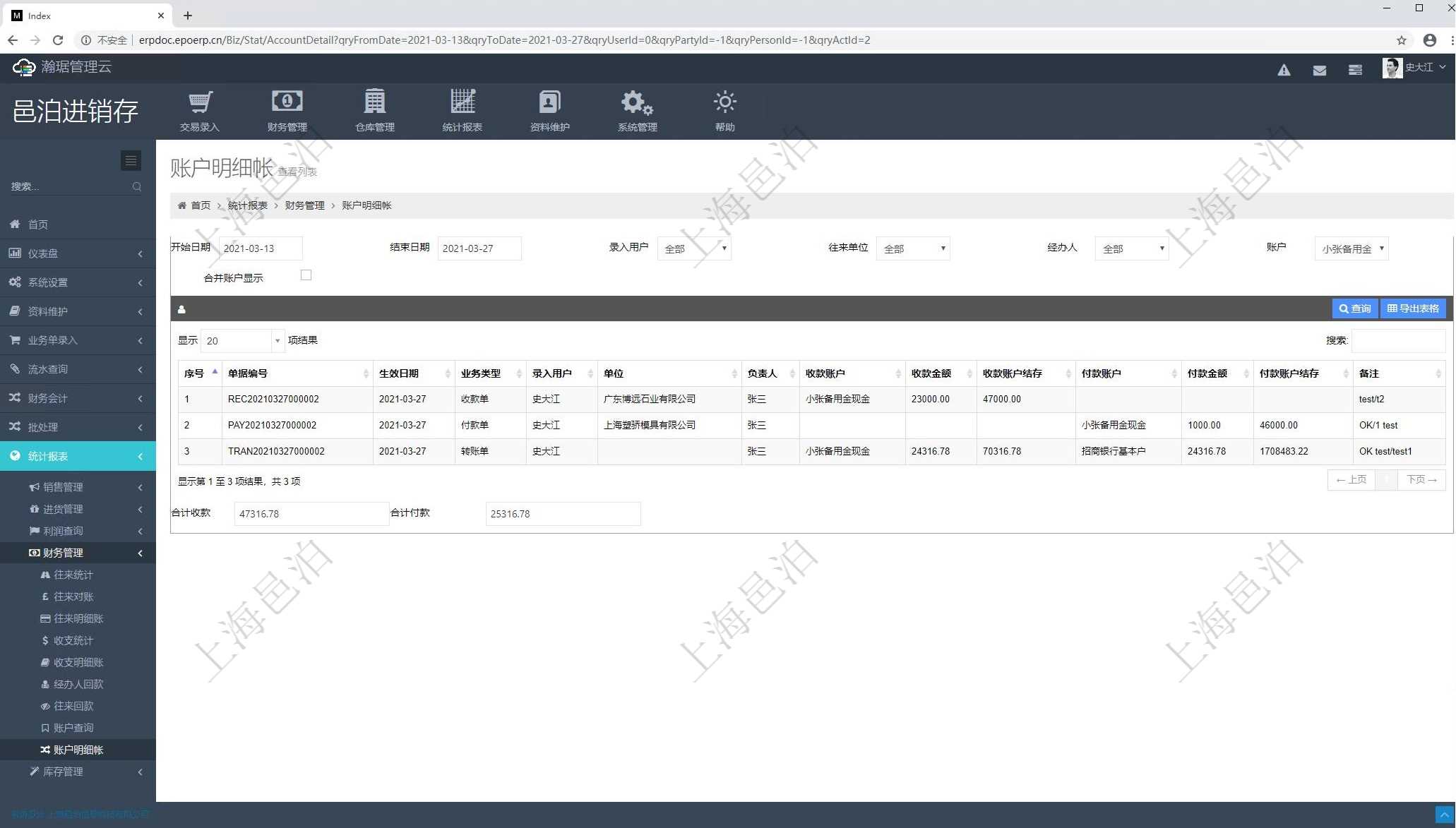 會計管理包括功能模塊有: 法人維護, 資源單位配置, 資源匯率, 交易類型, 交易明細類型, 賬戶維護, 賬戶余額, 套賬維護, 會計科目維護, 入賬模板維護, 交易維護, 交易明細維護, 總賬管理, 入賬處理, 交易明細類型默認值, 交易類型默認值, 交易發票維護, 交易結算, 交易結算明細。